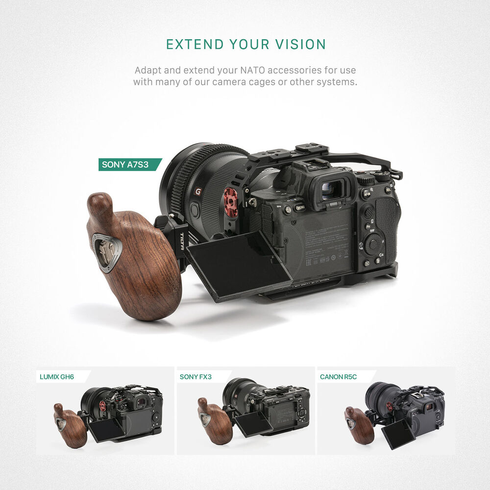 Extend your NATO rail connection to accommodate your camera's flip out LCD screen using this Tilta Left-Side NATO Rail Extension. One side of the extension is a NATO clamp which attaches to your camera cage and the other side boasts a NATO rail to attach compatible side handles. Its aluminum alloy and stainless steel construction creates a durable and lightweight device.