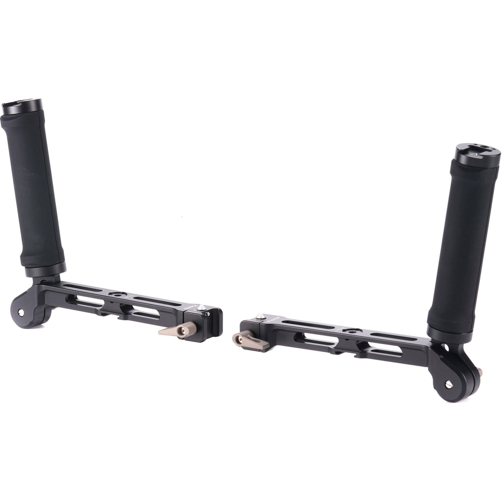 Comfortably support your RS 2, RSC 2, RS 3, or RS 3 Pro gimbal using both hands and the Dual-Handle Bracket for DJI Ronin from Tilta. Made of lightweight yet durable aluminum, each flexible handle features a rotatable folding design, a shoe mount, and anti-twist 1/4"-20 and 3/8"-16 accessory threads.
