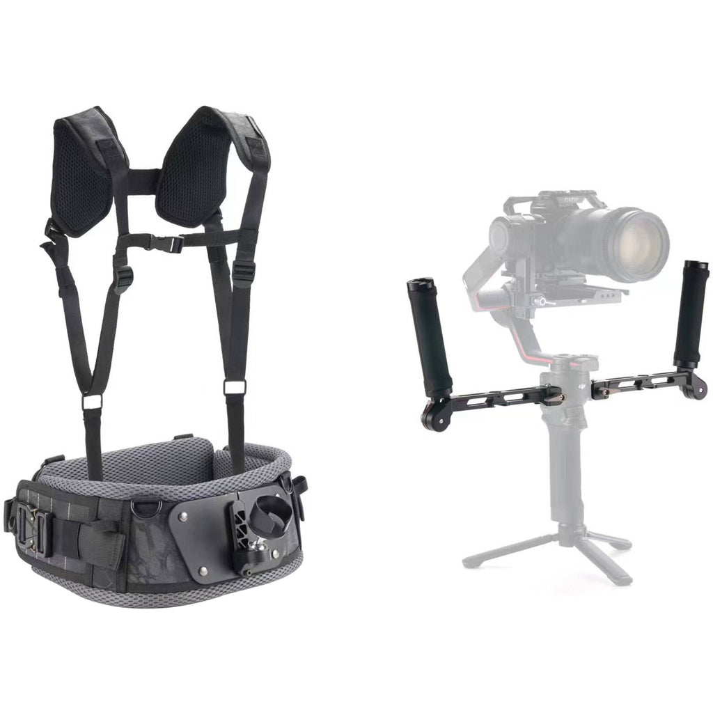 The Lightweight Dual-Handle Gimbal Support System from Tilta combines an ergonomic stabilizer vest with a dual-handle bracket for your DJI Ronin RS 2, RS C 2, RS 3, or RSC 3 Pro gimbal. This kit enables you to comfortably support your gimbal by transferring weight to your core and offering a two-handed grip option.