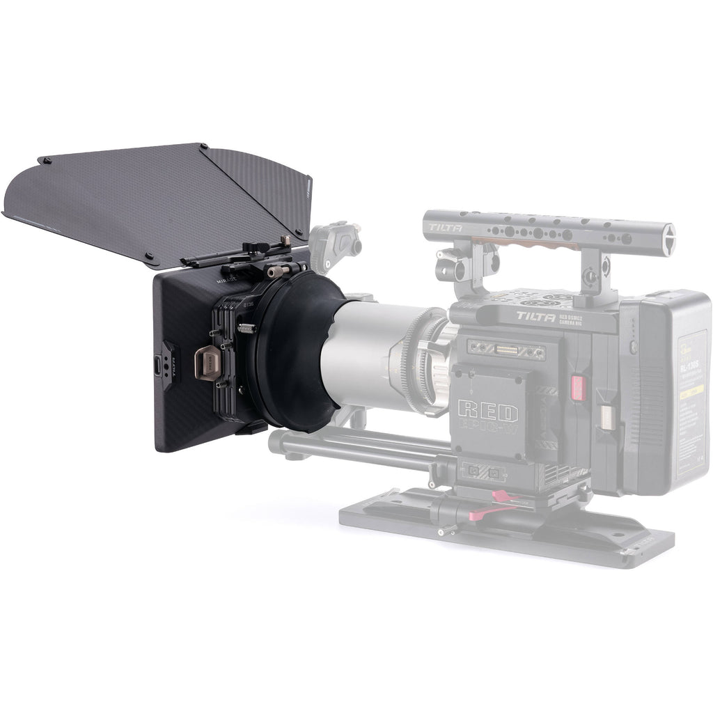 Create a matte box configuration that best suits your creative vision with the Mirage Pro Matte Box VND Kit from Tilta. This matte box kit includes a 114mm variable ND filter with 1 to 7 stops of light reduction. Four clamp-on adapters provide compatibility with 95, 110, 114, and 132mm lens diameters. A rubber donut kit helps make the box compatible with non-standard front diameters. You have the option of attaching the matte box directly to your rod-mounted rig with the 15mm LWS rod mounting bracket or creating a swing-away configuration with the included adapter.