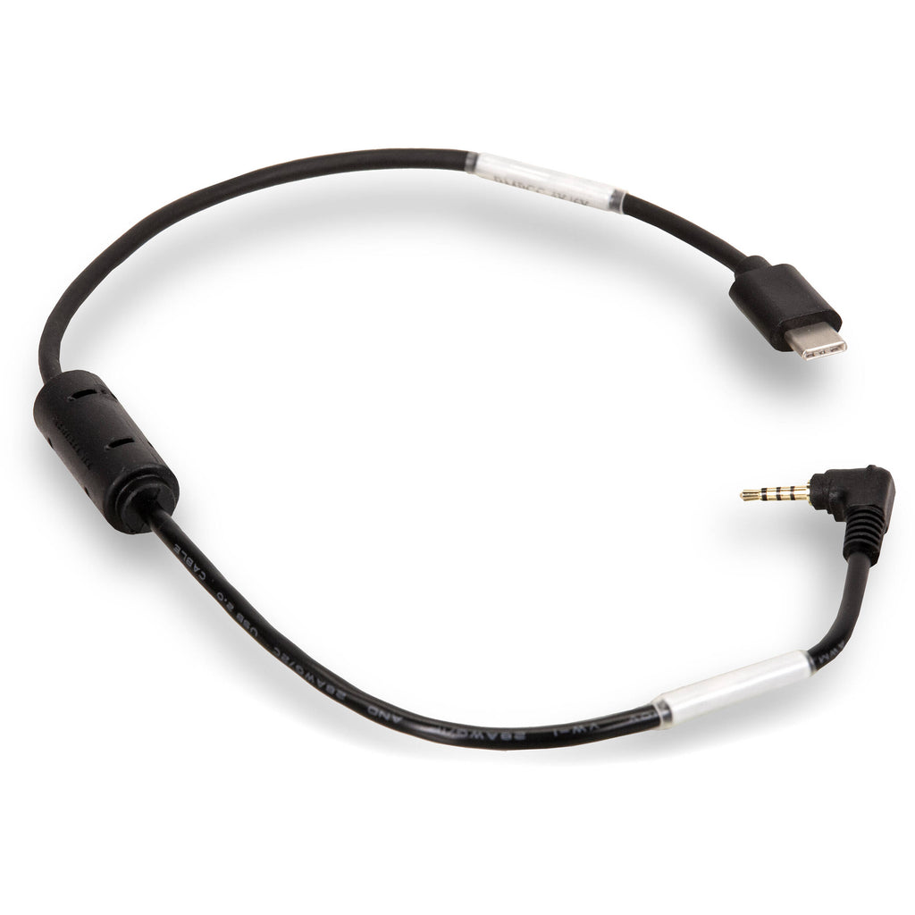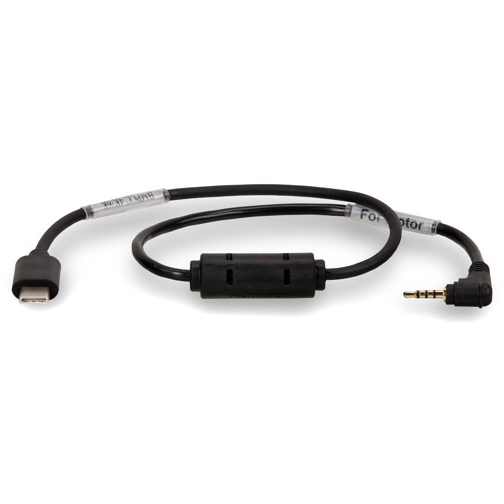 The Tilta Nucleus-Nano Run/Stop Cable for Nikon Z6/Z6, Canon R6/R5 & BMPCC 6K/4K is designed to connect the Tilta Nucleus-Nano motor to your camera, providing run/stop communication and triggering. The cable is approximately 17" long and features a LANC connector on one end and a USB Type-C for the camera on the other.