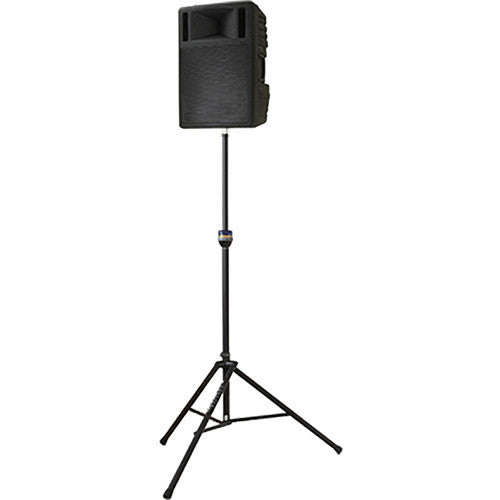 The Ultimate Support TS-99B is a lightweight speaker stand made of high-grade aluminum in a black matte finish, with a 150 lb load capacity. The stand features a built-in socket adapter accommodating both 1-3/8" and 1-1/2" speaker sockets, a glass-reinforced polycarbonate telescoping collar, with a die-cast metal clamp for extra security, and an easily tightened adjustment knob.