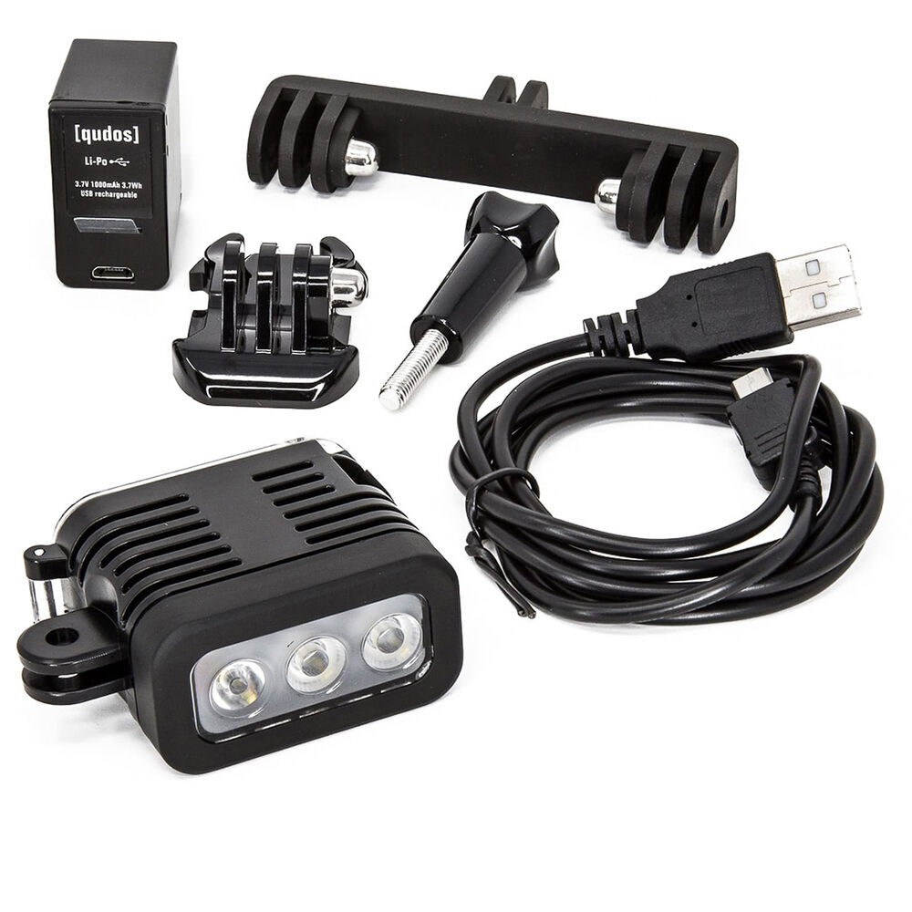 Equipped with a built-in rechargeable 5V 1000mAh battery that can run the light from 1.3 to up to 7 hours, depending on the mode used, the versatile unit functions in three light modes (Strong, Low, and SOS) for greater flexibility and creative adaptation. In Strong mode, the light operates as a spotlight. The Low mode provides a deep-dive, low-intensity lighting option. The SOS mode allows the light to function as a flashlight or in a flashing setting for emergency situations or communication with other divers within range. A mounting bracket and a USB charger are included in the package.