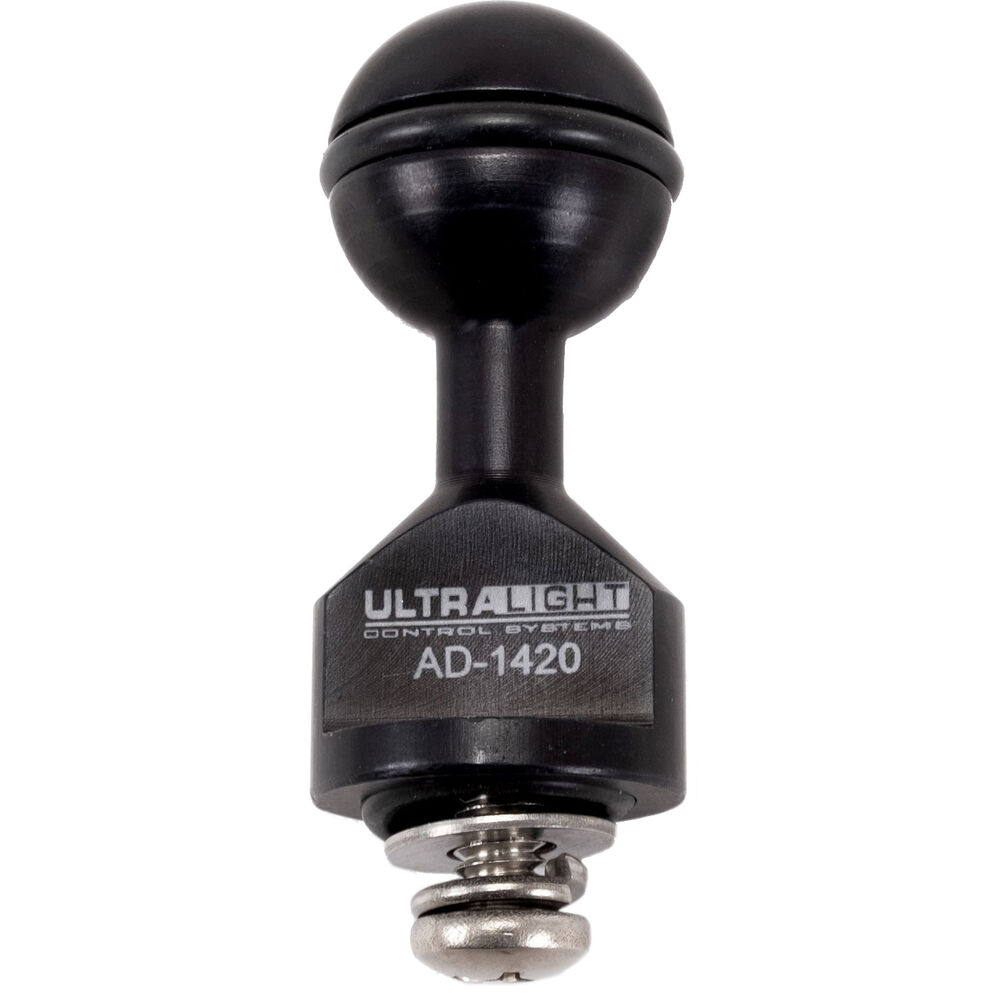 The Ultralight Control Systems AD-1420 Base Adapter provides a mounting ball for adding a light arm, a light, or any number of accessories to your underwater photography setup. This version of the 1420 features 1/4"-20 threads with a bolt and two washers for securely mounting on a tray, handle, and more.