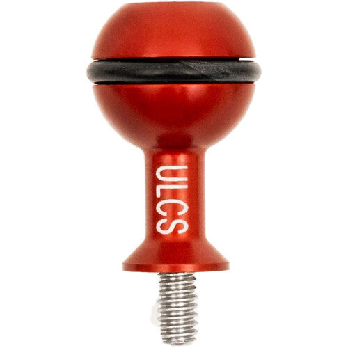 This red Ball Adapter with 1.75" x 1/4"-20 Bolt and Washer from Ultralight Control Systems is designed to attach to the top of underwater camera housing handles as an attachment point for lighting arms or other accessories.