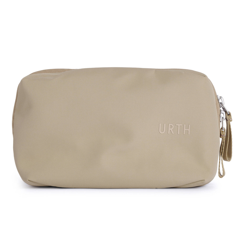 The beige Zeolite Tech Organizer from Urth is a travel organizer with 11 storage compartments for charging cables, memory cards, earphones, a power bank, your iPhone charger, and more. The light interior of this travel tech organizer makes finding small items quick and easy.