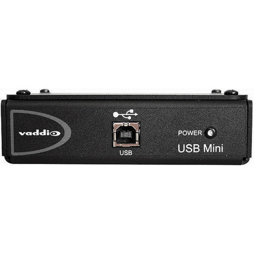 The included Quick Connect USB Mini Interface provides USB 2.0 streaming and capture capabilities via its USB Type-B input. It uses UVC drivers to automatically negotiate the highest possible resolution that the PC, UC application, and USB Mini can provide up to 720p at 30 fps. The USB Mini powers the camera and returns HSDS (differential) video with distances up to 100' using two separately available Cat-5 wires. The USB Mini allows for on-wall or under-table mounting with an integrated mounting tab.