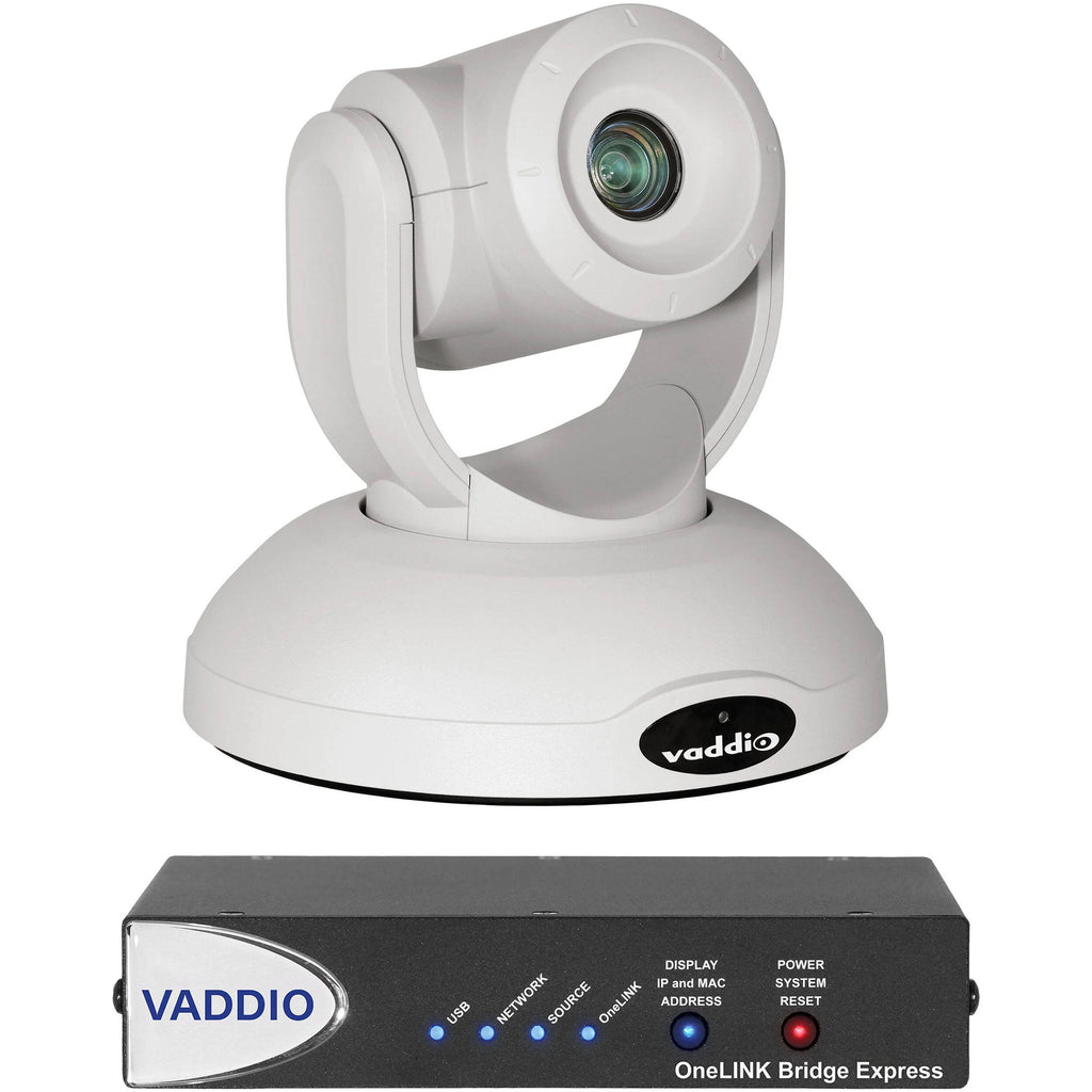 This RoboSHOT 40 UHD 4K OneLINK Bridge Express System from Vaddio combines the white RoboSHOT 40 UHD camera with the OneLINK Bridge Express to extend power, video, and control over a single cable for simple, tidy installation. Production-quality RoboSHOT 40 UHD provides brilliant 4K video footage for broadcasting or live streaming applications as well as 40x zoom, genlock capabilities, ultrasmooth motor movement, and broadcast image quality. The system's OneLINK Bridge Express extends HD video, Ethernet, RS-232, and power up to 328' on a single Cat 6 cable and it can output up to 1080p60 uncompressed video over USB Type-B.