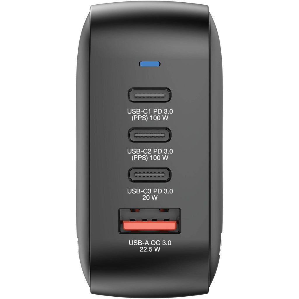 Power and recharge an array of devices quickly with the 100W 4-Port GaN Wall Charger from Verbatim. Utilizing GaN technology, this charger remains compact, keeps heat low, while still providing up to 100W of power to your devices. That's enough power for everything from smartphones to laptops. The charger provides you with four fast-charging ports that include three USB-C at up to 100W each, supporting PD 3.0 (PPS) technology. The USB-A port provides up to 22.5W with support for QC 3.0.
