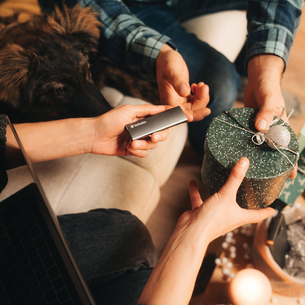 Lightweight, fast, compact, and durable, the 1TB Vx500 USB 3.2 Gen 2 External SSD from Verbatim offers 1TB is ideal for those who demand maximum performance. It offers 1TB of storage and connects to your host system using its USB-C 3.2 Gen 2 interface, which provides bus power and transfers data at speeds of up to 500 MB/s, making this drive well suited for video editing, moving large amounts of data, and maximizing gaming performance. Thanks to a shock-resistant metal housing, your data will be protected against bumps and drops. Compatible with Windows and Mac, USB-C to USB-C and a USB-C to USB-A cables are included. Windows users will also have access to Nero Backup.