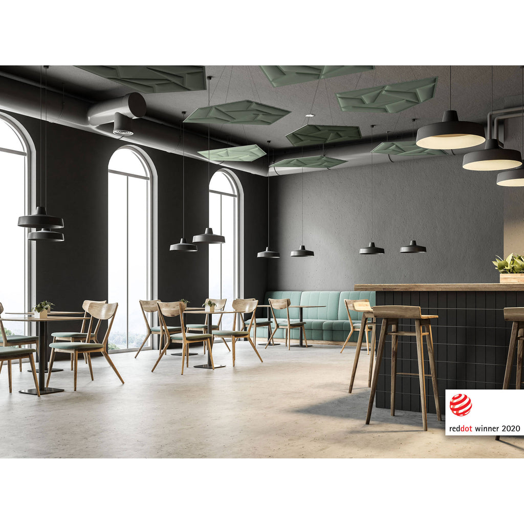 The blue 1 Vicoustic GEN_VMT PENRAY 01 Cloud is a generative structure that allows you to create a set of combinations that not only optimize the acoustic environment but also add aesthetic values to any space. The first set of clouds from the GEN_VMT collection, winner of the Red Dot Product Design Award 2020, raises the bar to a higher level. Sustainable and extremely durable, it can significantly reduce excess noise in various settings, adding an innovative interior design asset to an architectural project. Plus, being a suspended acoustic element, it presents twice the area of absorbing material exposed next to a common acoustic panel.