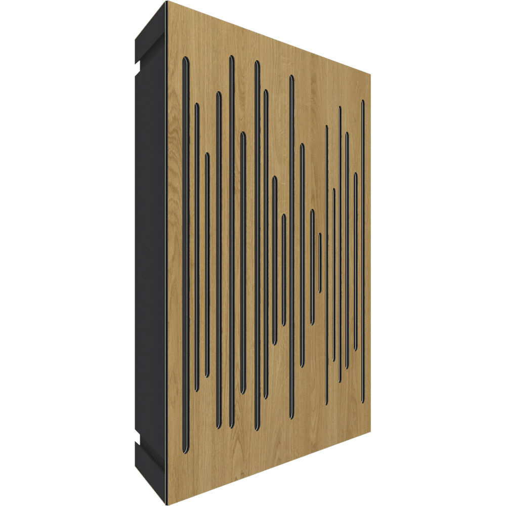 This 2-pack of natural oak Super Bass Extreme Ultra Acoustic Treatment from Vicoustic features an elegant wooden front that is based on Vicoustic's flagship Wavewood panel. Appropriate for corner mounting, it provides effective low-frequency absorption between 60 to 125 Hz, and delivers maximum effectiveness from 75 to 100 Hz. The wooden front panel has two functions, providing sufficient mid- to high-frequency absorption to control corner reflections without deadening the sound.
