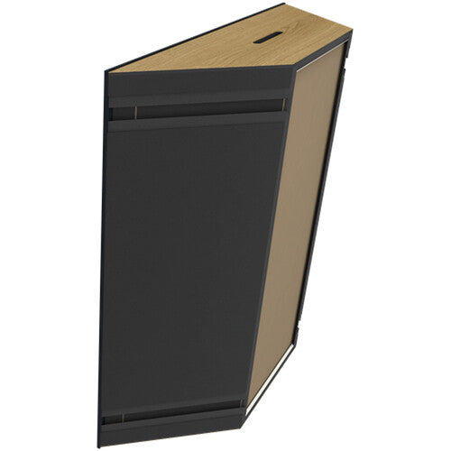 Optimized for corner mounting, this 2-pack of natural oak Vicoustic Super Bass Extreme Ultra VMT Bass Trap features a black front, and it is designed to provide effective low-frequency absorption between 60 to 125 Hz, delivering maximum effectiveness between 75 to 100 Hz. The VMT front provides sufficient mid-high frequency absorption to control corner reflections. When porous materials such as foam are applied to corners or walls, they become less efficient in dealing with low frequencies, because the particle velocity or air movement associated with long wavelengths is low. However, the sound pressure is at its maximum and Super Bass Extreme's internal membrane transforms these high-pressure fluctuations into air motion. The membrane sympathetically vibrates over a 75 to 100 Hz frequency range, causing the air to pass through a layer of high-density foam that absorbs the low frequencies. Super Bass Extreme Ultra is highly recommended for smaller rooms with low-frequency issues. The panel can be used in different corner positions, and its modular structure allows further units to be added as required.