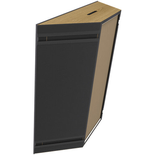 Optimized for corner mounting, this 2-pack of natural oak Vicoustic Super Bass Extreme Ultra VMT Bass Trap features a gray front, and it is designed to provide effective low-frequency absorption between 60 to 125 Hz, delivering maximum effectiveness between 75 to 100 Hz. The VMT front provides sufficient mid-high frequency absorption to control corner reflections. When porous materials such as foam are applied to corners or walls, they become less efficient in dealing with low frequencies, because the particle velocity or air movement associated with long wavelengths is low. However, the sound pressure is at its maximum and Super Bass Extreme's internal membrane transforms these high-pressure fluctuations into air motion. The membrane sympathetically vibrates over a 75 to 100 Hz frequency range, causing the air to pass through a layer of high-density foam that absorbs the low frequencies. Super Bass Extreme Ultra is highly recommended for smaller rooms with low-frequency issues. The panel can be used in different corner positions, and its modular structure allows further units to be added as required.