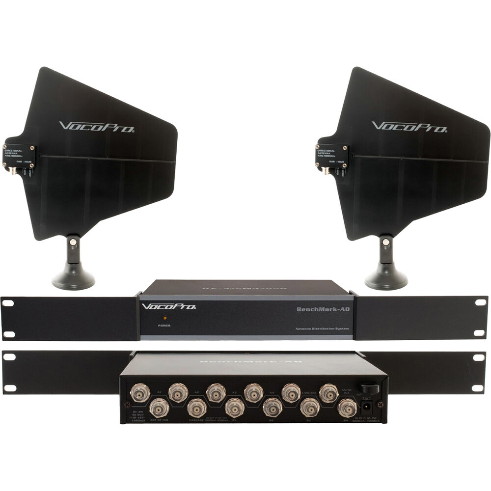 - VocoPro Benchmark-AD Antenna Distribution System with Two Active Directional Antennas (470 to 980 MHz)