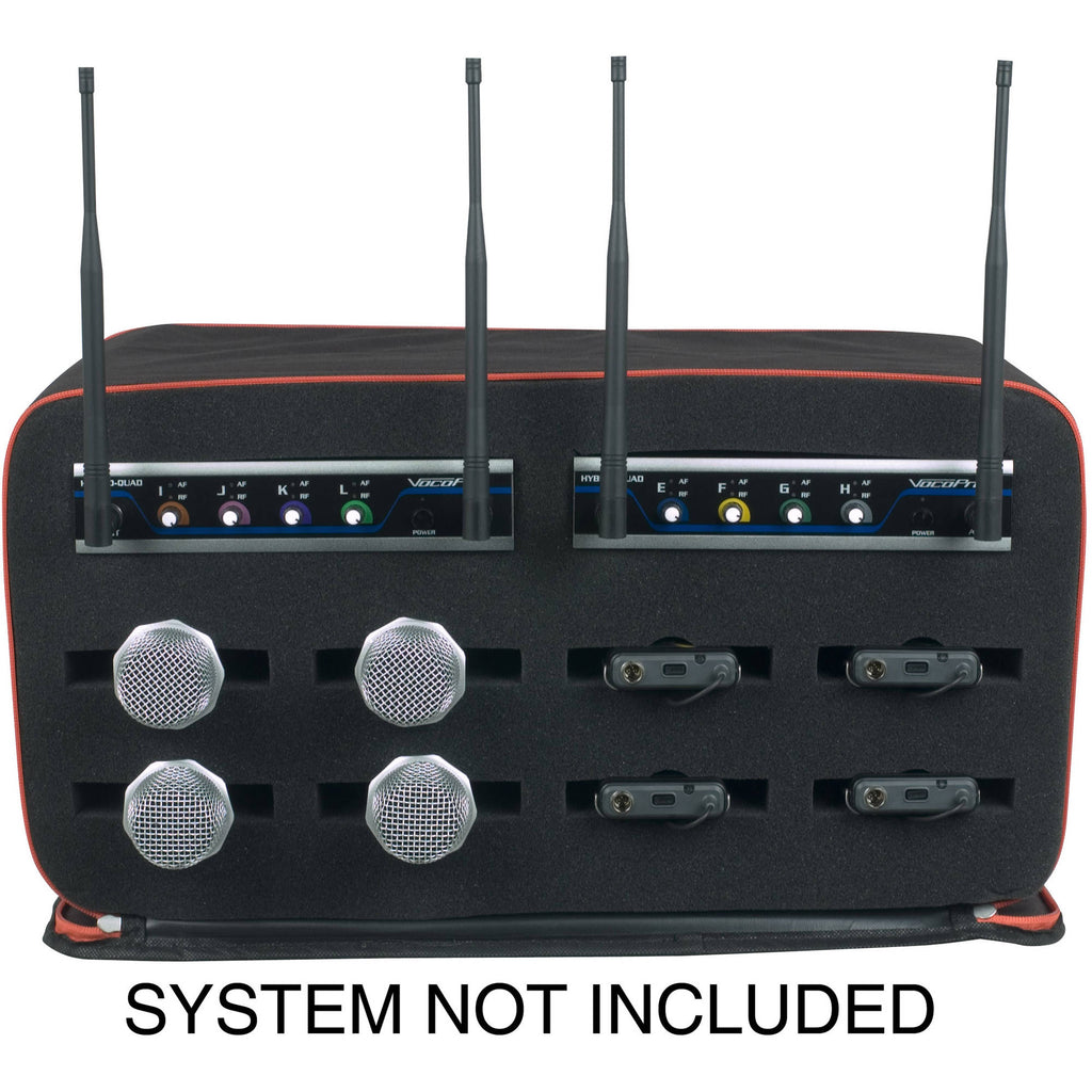 Store and transport two wireless receivers and eight handheld or bodypack transmitters with the VocoPro Heavy-Duty Bag for Hybrid Systems. A durable nylon exterior and foam interior protect your system from the rigors of travel. An additional zipper pocket on the outside of the bag allows for the storage of any accessories like cables or mic tape to complete your on-the-go setup.