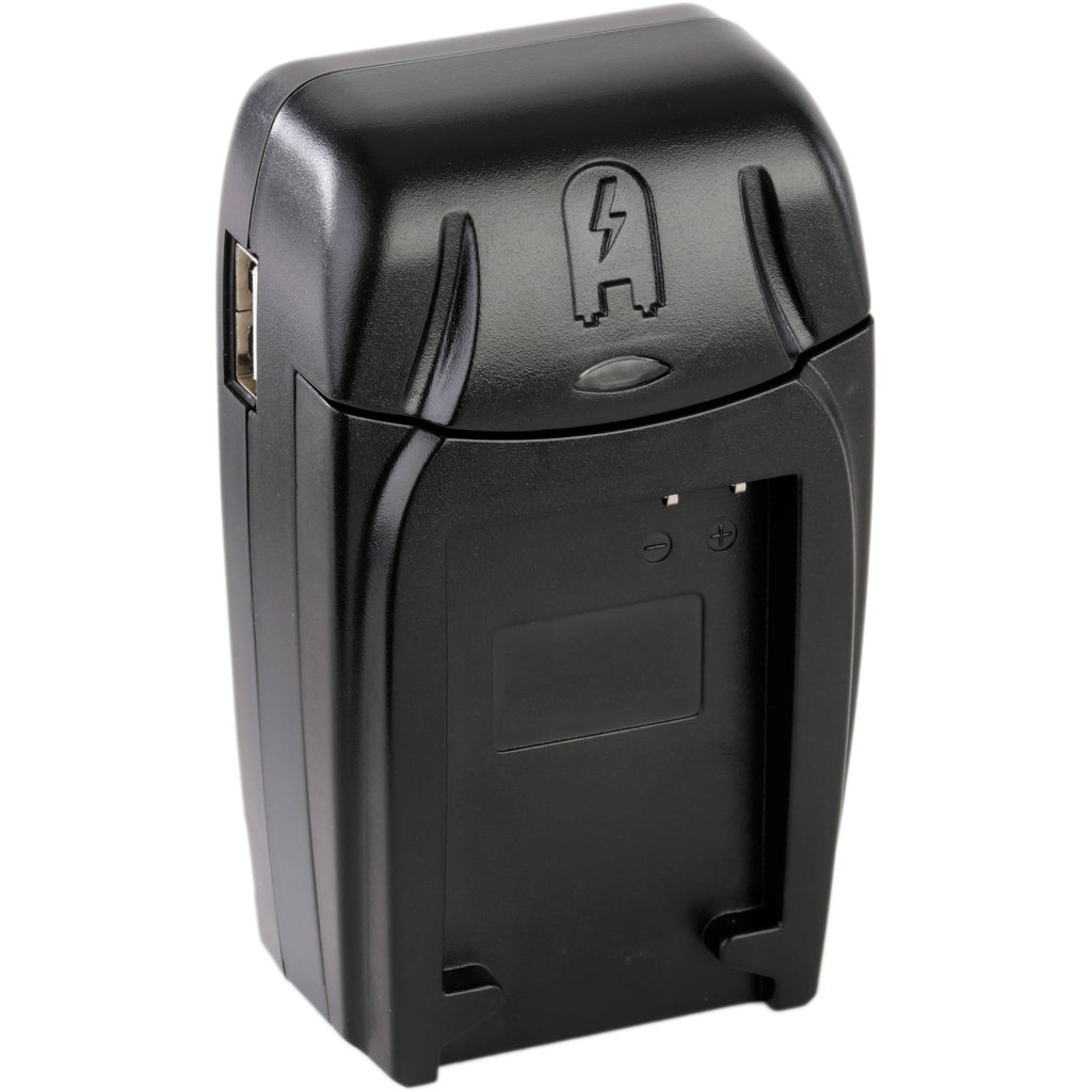The Compact AC/DC Battery Charger from Watson charges many different batteries using dedicated interchangeable plates, which are required and available separately. The charger runs on 100-240 VAC power, allowing for worldwide use. It features a fold-out 2-prong US plug and is supplied with a European plug adapter, as well as a 12 VDC car charger that plugs into a cigarette lighter. This makes it ideal for use both at home and on the road. The Compact AC/DC Charger features a USB power output that allows you to charge and power MP3 players, phones, digital cameras, and other devices with a USB power input - even while charging your camera or camcorder batteries.