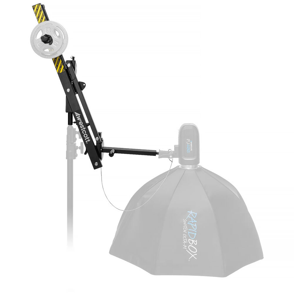 Designed for precise positioning of your fixture, the Easy Boom from Westcott features a 26" boom arm extension for a full range of motion and 360° rotation. With a durable and sturdy design, the boom supports up to 15 lb of lighting equipment. Thanks to its brass bearings, it offers smooth movement and placement at any height or angle. Unlike traditionally heavy and bulky booms, the Easy Boom is compact enough for photo and video makers working with limited studio space. Made to simplify your lighting setup, the Easy Boom lives up to its name. It is a great asset for studios or production sets and is easy and quick to work with.