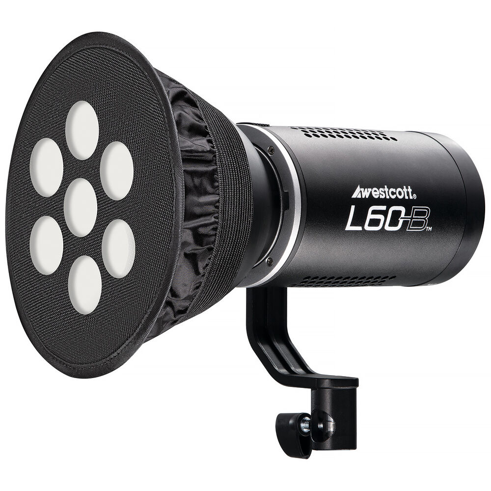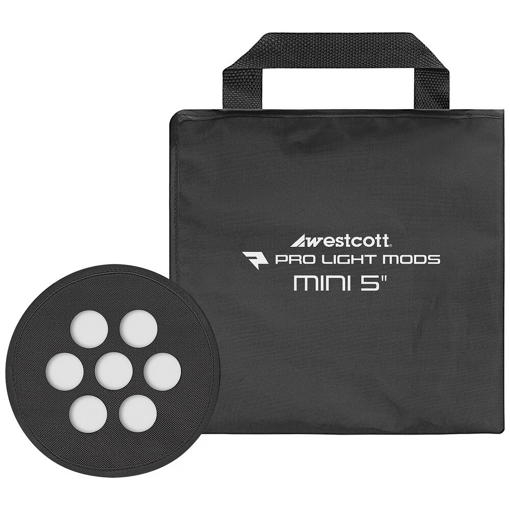 Take your images to the next level with this 5" Pro Light Mods Mini from Westcott. This reflector cover is designed to quickly transform your reflector into a powerful light source and set piece. Compatible with the brand's included reflectors for the popular FJ400, FJ200, and L60-B monolights, it also works with other 4-5.5" metal reflectors. With a black fabric attachment, similar to an egg crate grid, you get a durable, long-lasting accessory that will enhance your shots. Each mod attaches with an elastic non-slip attachment for a light-tight seal and secure fit. Ideal for photographers and videographers on the go, this 5" piece is lightweight, portable, and easy to store with the included travel case.