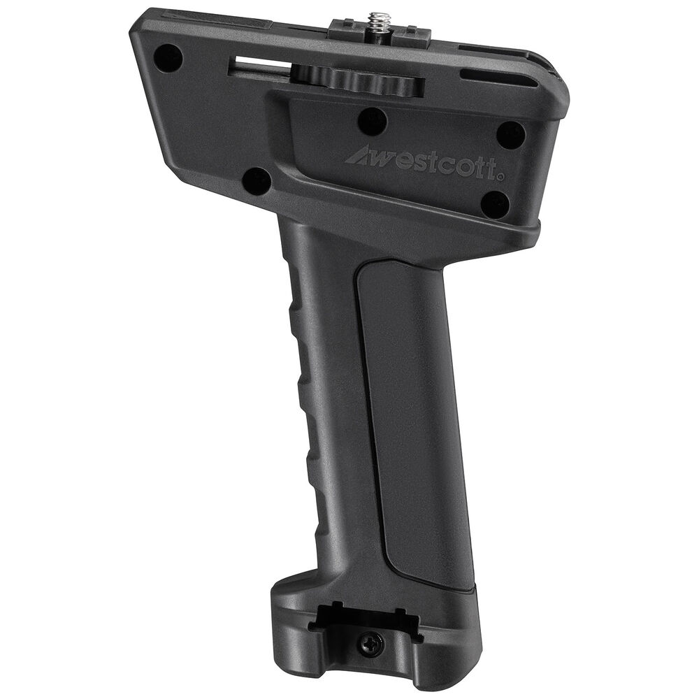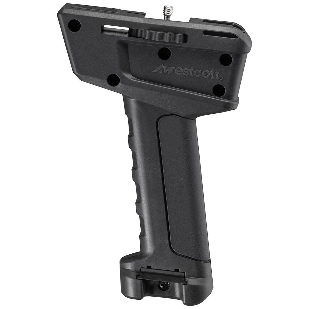 Designed to make off-camera lighting a snap in any situation, the ProGrip 2 from Westcott is a portable, sturdy, and lightweight handheld mount for flash units up to 6 lb. Its ergonomic pistol grip design is not only comfortable in the hand, but made to accommodate the FJ80 II speedlight, FJ200 strobe, or other third-party lights. Quickly achieve your desired lighting angle and spread by attaching your light using the universal cold shoe or adjustable 1/4"-20 male thread for both vertical and horizontal mounting.