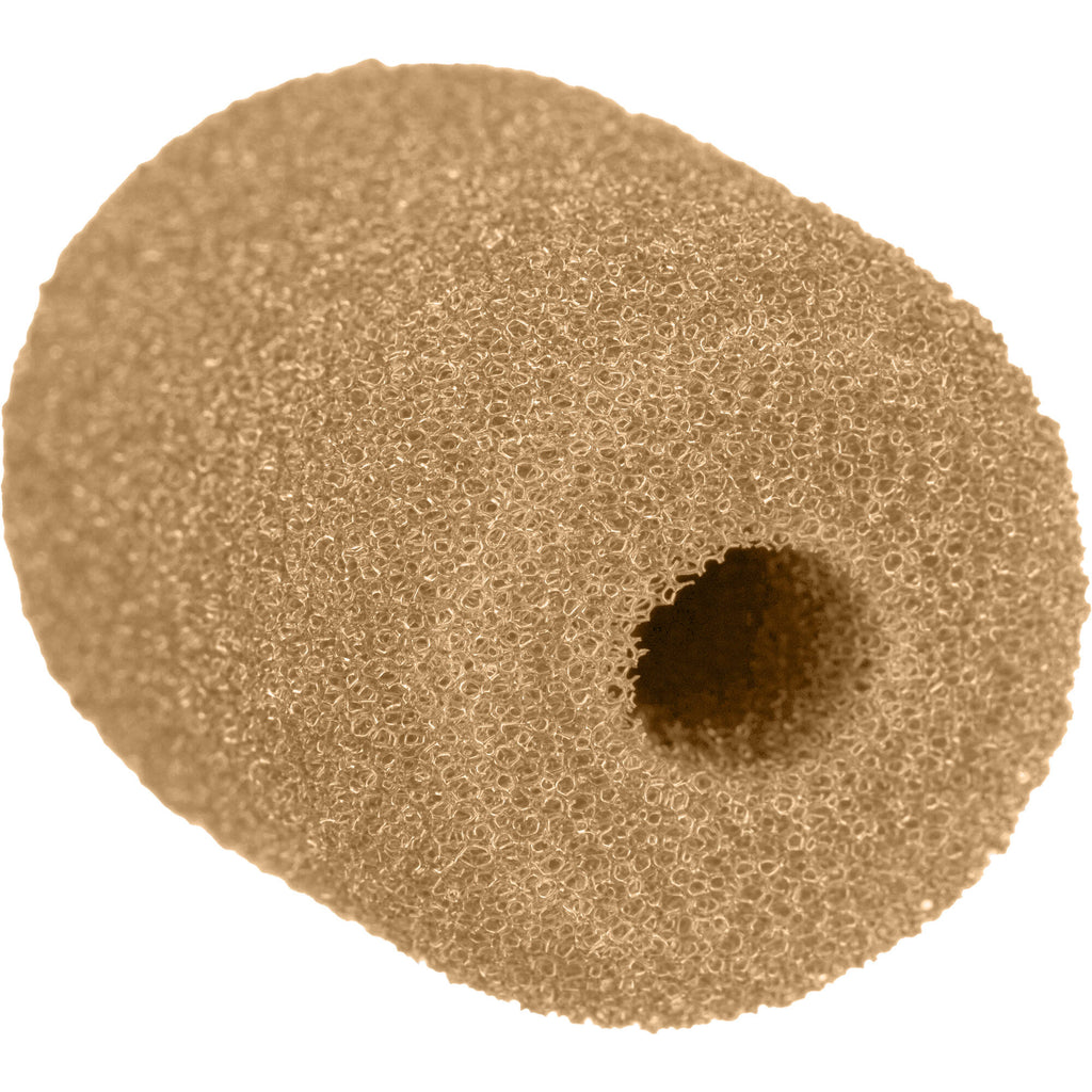 The tan WindTech 1100 Series Cylindrical Windscreen is designed to fit any microphone measuring 1/4" (6.35mm) in diameter. The windscreen offers optimum wind diffusion and will fit select AKG, Audio-Technica, Audix, Beyerdynamic, Telex, and Crown microphones.