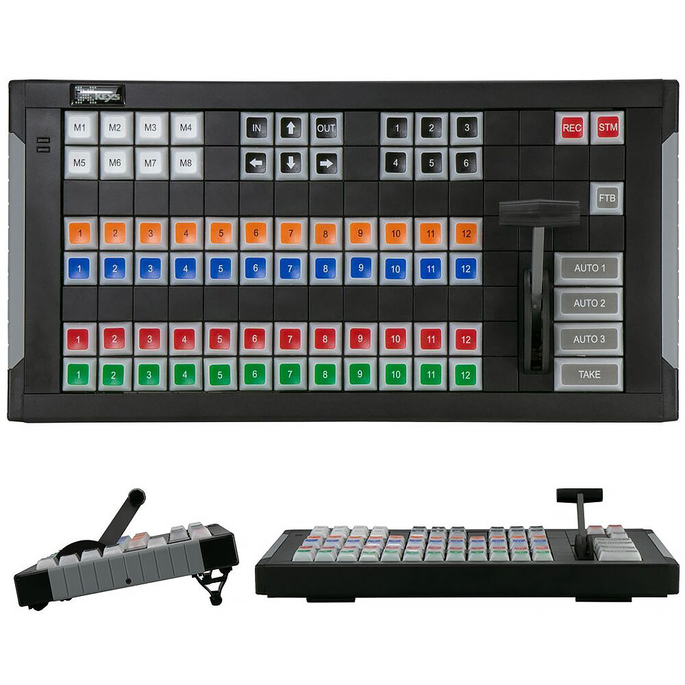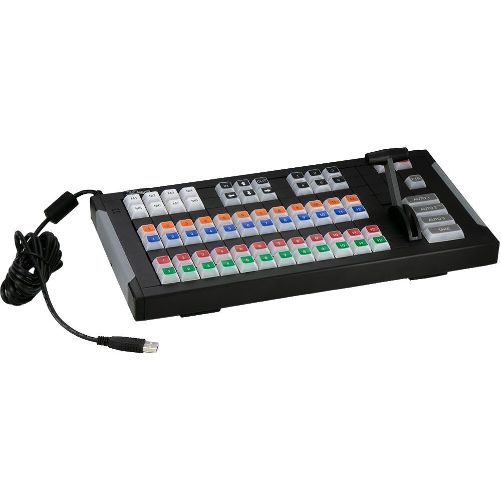 Use this X-keys XKE-124 T-Bar Pre-Assembled Video Switcher in tandem with your vMix software for an intuitive switching experience. The switcher's 39 keys and T-bar come pre-configured to mimic the vMix software template, but an included key puller and additional blank keys allows you to customize the layout. Simply plug the integrated USB-A cable into your Windows or macOS computer, open vMix, and toggle the "X-keys Video Switcher Kit" from the premade template drop down and you're ready to use the switcher.