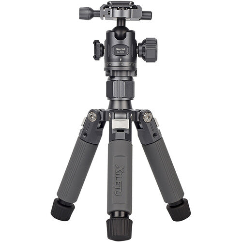 The M-5GS Tabletop Tripod with G-28S Ball Head from Xiletu is a compact yet versatile tabletop tripod with a load capacity of 26.5 lb and a maximum height of 20.1 inches. It has a very compact design due to the 5-section legs which simply twist to unlock and lock, without external locking joints. Each leg has independent leg spread and three locking angles, plus rubber feet for traction. Each leg also features two 1/4"-20 threaded accessory mounts for adding extension arms, compact LED lights, microphones, and more. The head mount platform at the top of the center column also features three more 1/4"-20 accessory sockets, for a total of 9 accessory mounting points for creating a customized rig.