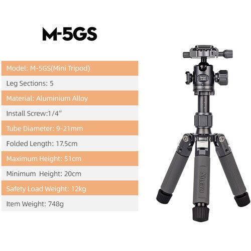 - XILETU M-5GS Tabletop Tripod with G-28S Ball Head