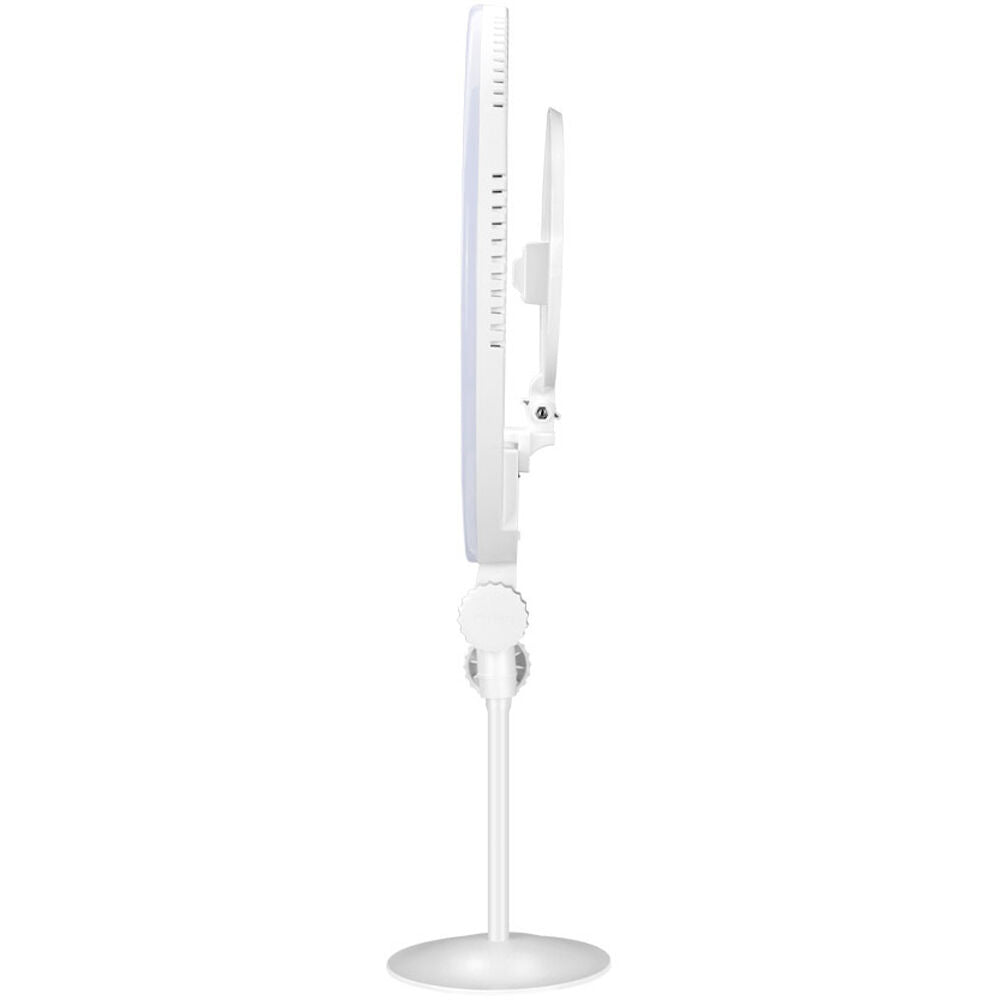 The YN208 Pro 3200-5500K LED Ring Light from Yongnuo measures 15" in diameter and has a distinctive shape. It can be mounted to a grip head or to the included stand, allowing you to shoot through it for a silky smooth, near-shadowless effect that is flattering to your talent's complexion. Useful for selfies, a mirror is also included for posing, and the light creates unique circular catchlights reflected in your subject's eyes.