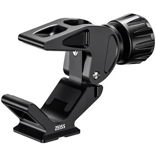 This ZEISS Binoculars Tripod Clamp is just the ticket for binoculars that are not compatible with upright-style tripod adapters. The clamp simply grabs one of the ocular tubes and will fit most sizes and brands. The large knurled tightening knob is easy to operate even when wearing gloves.