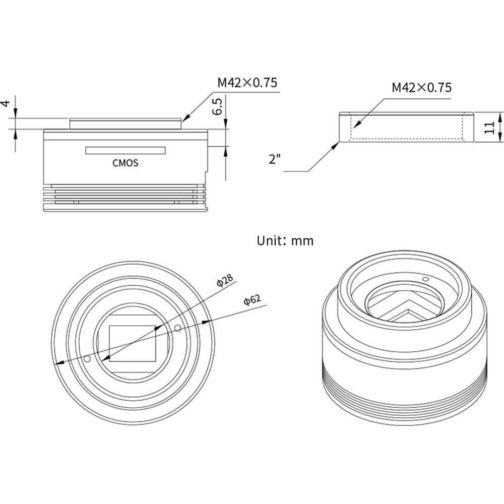 A 2mm thick antireflective-coated protective window improves the camera's performance in UV and near-IR wavelengths.